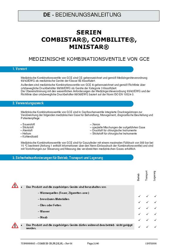 Bedienungsanleitung für Medizinische Kombinationsventile von GCE